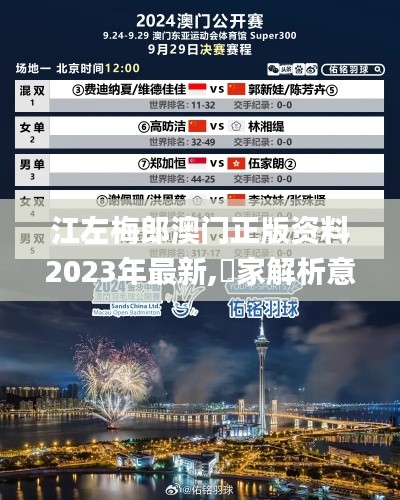 澳门作为一个集文化、旅游、娱乐于一体的城市,其对于江左梅郎的研究和推广起到了非常重要的作用。澳门正版资料的发布,不仅提供了丰富的内容和背景信息,还为研究者、爱好者提供了可靠的研究基础。因此,在2023年最新的江左梅郎澳门正版资料中,我们能够看到更为系统、专业的信息。